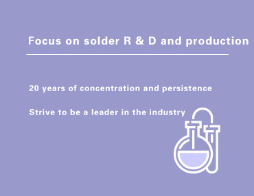 21 years of focus on solder research and development and production, using high quality tin ore raw materials, with advanced production equipment.